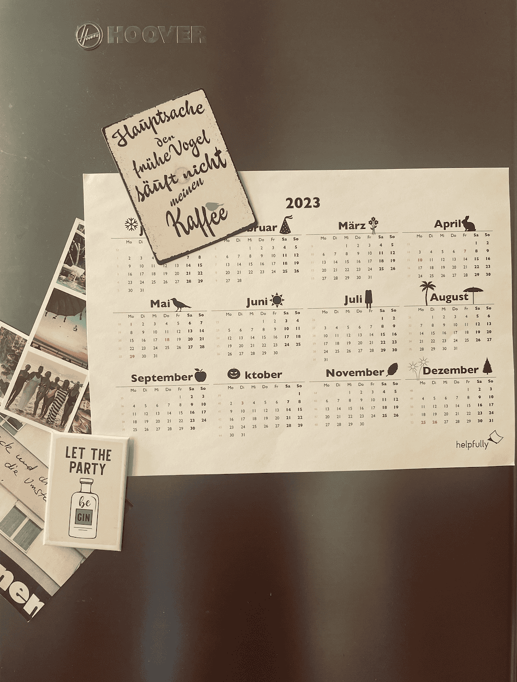 Der Jahreskalender 2023 im A4 Format mit Motiven ist ruckzuck ausgedruckt und kann mit Maskingtapa an der Wand oder mit Magneten am Kühlschrank befestigt werden. Wir haben ihn so gestaltet, dass Du alle Tage, Monate und auch die Kalenderwochen im Blick hast.