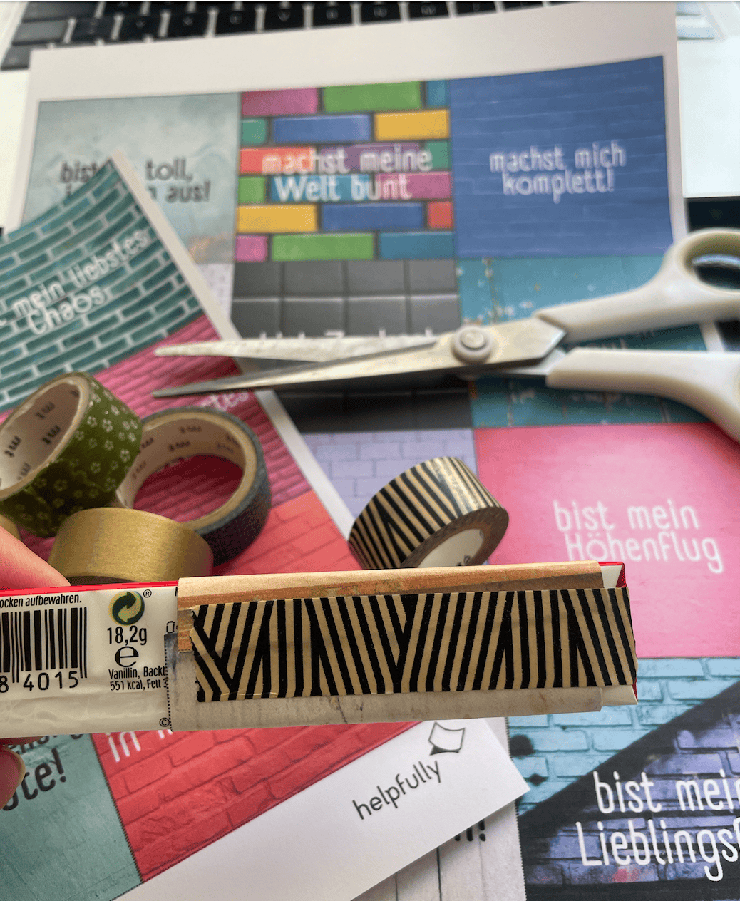 - Lege sie an/hinter das „du“ und klebe sie mit Tape rückseitig zusammen.