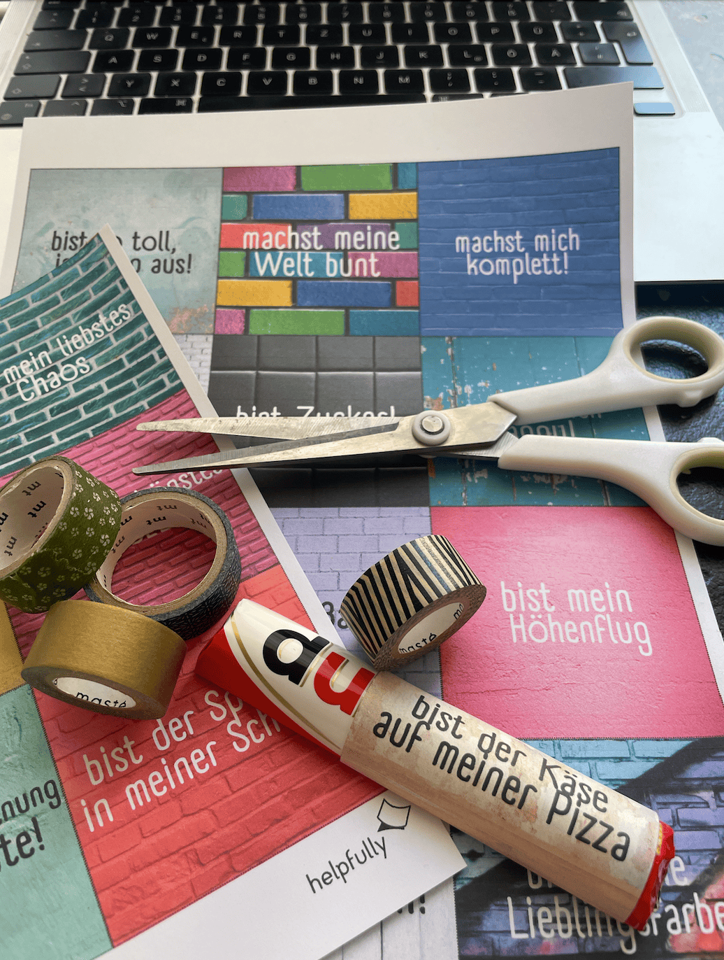 - Schneide die Sprüche entlang der Linien aus.