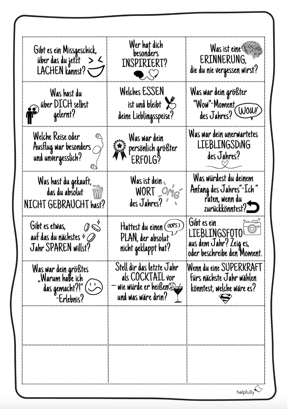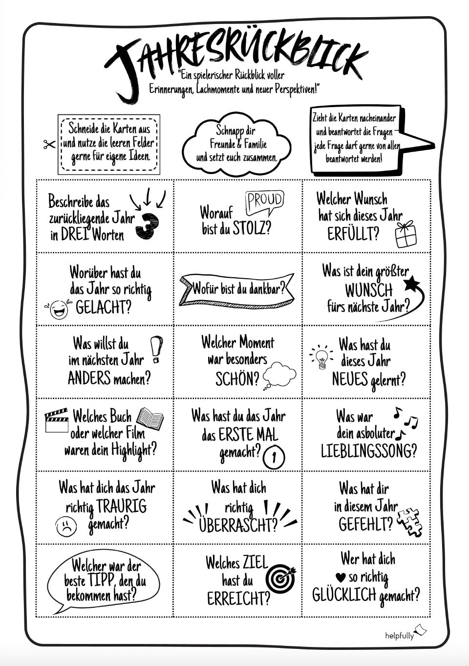 ✨ Jetzt auf helpfully.de die Vorlage mit Rückblick ausdrucken und das Jahr Revue passieren lassen!