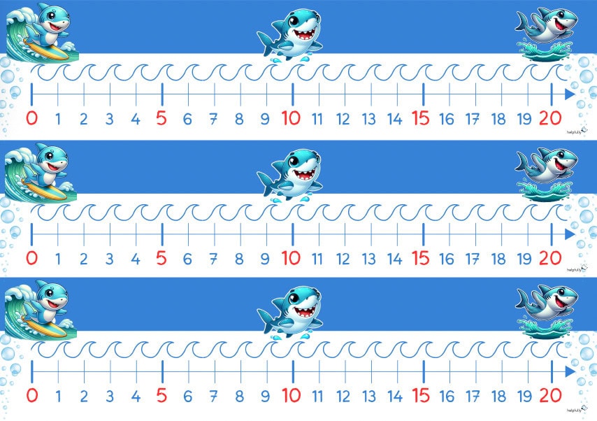 🦈🌊 Mathe mit Biss – der Haifisch-Zahlenstrahl. Mathe ist trocken? Nicht mit diesem Zahlenstrahl! Hier reiten coole Haifische die Zahlenwellen von 0 bis 20 – und bringen extra viel Schwung ins Lernen. Perfekt für alle Mathehaie, die sich sicher durch die Zahlenmeere bewegen wollen!