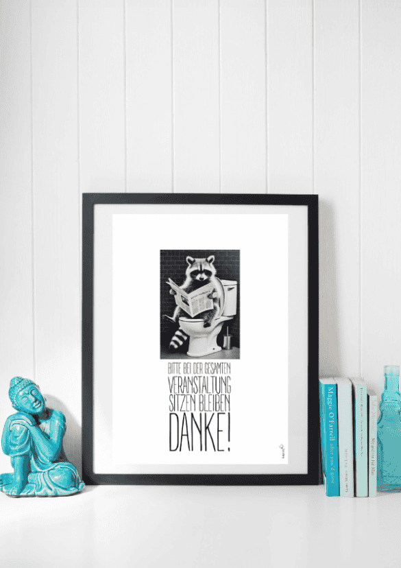 Drucke die Vorlage in Schwarz-Weiß im A4 Hochformat mit 100% Originalgröße aus. Dann gerne noch in einen Rahmen deiner Wahl im WC aufhängen / aufstellen – fertig!