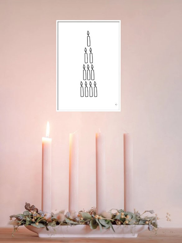 Cooler Adventskranz mal anders – und zwar aus Papier. Unser Wandbild „Papierkerzen“ kommt in zwei Varianten: ganz gerade gestapelt oder charmant gemixt. Ausdrucken, einrahmen oder mit Masking Tape an die Wand – fertig ist die moderne Adventsdeko, die null Nadeln verliert und ohne Wachs auskommt. Cool, clean, super schnell gemacht.