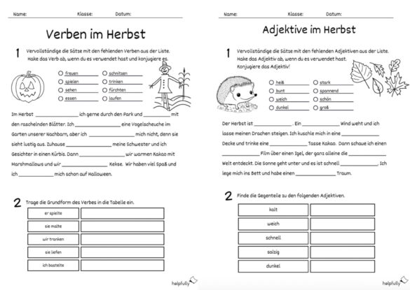 Arbeitsblatt Deutsch – Verben & Adjektive „Herbst“ (4/5 Klasse)