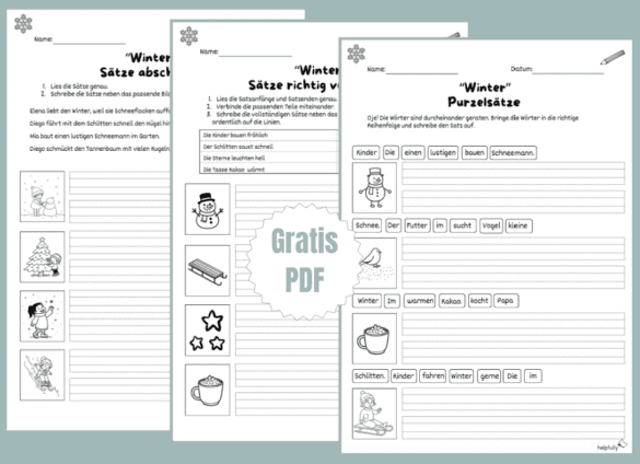 Drei Arbeitsblätter zum Thema „Winter“ für Grundschulklassen, kindgerecht, klar strukturiert und mit echter Material-Freude gestaltet. Solo einsetzbar oder schön aufeinander aufbauend als winterliche Einheit im Deutschunterricht.