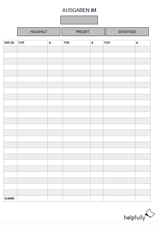 Klassisch und doch so effektiv: Die Ausgaben-Tabelle hilft Dir jeden Monat dabei Deine Finanzen im Blick zu behalten. Erstaunlich, was sich da für Summen addieren… Hier schon mit „Haushalt, Freizeit und Sonstiges“ zum Ausdrucken und Befüllen!