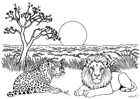 Mit dem Ausmalbild holst du dir ein Stück Afrika nach Hause. Also, ran an die Stifte und lass den König der Tiere und den schnellen Jäger in deinen schönsten Farben erstrahlen… Wir wünschen dir tierisch viel Spaß!