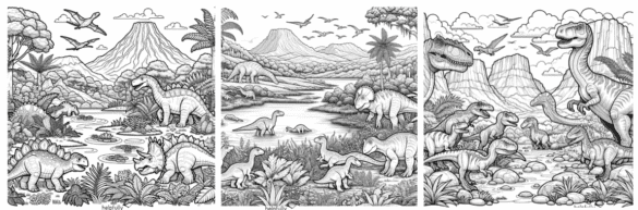 Ausmalbild – detaillierte Motive „Dinosaurier“ (3-seitige Vorlage)