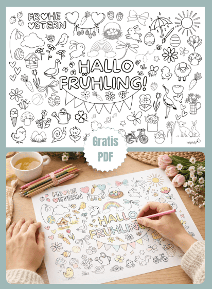 Frühlingsgefühle zum Ausmalen: „HALLO FRÜHLING“ Doodle-Vorlage! Ja, endlich ist er da! Wenn die ersten Sonnenstrahlen die Nase kitzeln und die Natur langsam erwacht, wird es Zeit für frische Farben auf dem Basteltisch. Unsere „HALLO FRÜHLING“-Ausmalvorlage ist eine Liebeserklärung an die ersten Frühlingsboten, das zarte Grün und natürlich die Vorfreude auf die Eiersuche an Ostern.