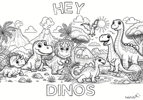 Ausmalbild für Kinder „Hey Dinos“