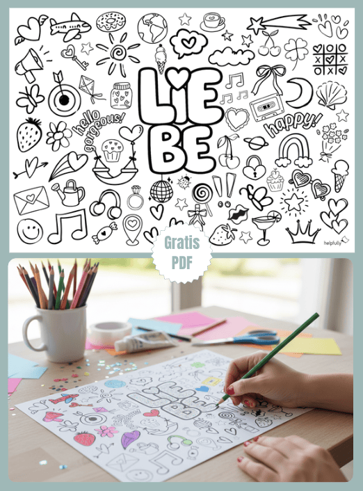 Liebe zum Ausmalen: Kreatives Retreat für Happy Vibes! Liebe ist eins der schönsten Gefühle der Welt , sei es die Liebe zu uns selbst oder zu und von anderen – und jetzt können wir dem Ganzen noch eigene Farben geben! Unser „LIEBE“-Ausmalbild für Erwachsene ist die Einladung, mal kurz die Pausetaste zu drücken, den Alltag auszublenden und tief in liebevolle Doodles einzutauchen.