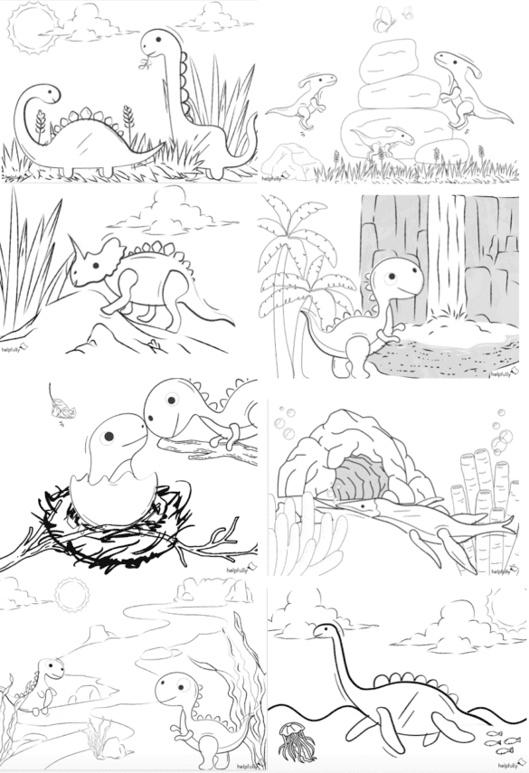 Die PDF-Vorlage(n) zum Ausmalen „Süße Dinos“ haben bereits beim Erstellen Spaß gemacht! Die Ausmalbildern werden den Kindern sicherlich auch ein Lächeln auf’s Gesicht zaubern, wenn die Dinosaurier und die Landschaften noch Farbklekse bekommen. Du kannst die Malvorlagen kostenlos runterladen und im A4-Quer-Format ausdrucken, noch Stifte rausholen und schon kann’s losgehen!