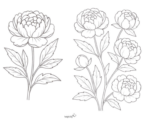 Die Pfingstrosen-Malvorlagen laden zum Innehalten und Kreativsein ein. Ob als einzelne Blüte oder als üppiger Strauß – jede Linie wartet darauf, mit Leben gefüllt zu werden. Mega schön für alle Blumenfans, die Lust auf entspannte Ausmalmomente haben, vom Vorschulkind bis zur Oma mit Farbstiften im Anschlag. Einfach ausdrucken, Lieblingsfarben wählen und losmalen. Ein kleines Kunstwerk für zwischendurch, mit Liebe, von helpfully.