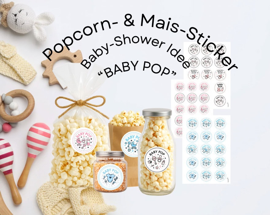 Ob für Baby Girls, Baby Boys oder als fröhlich-bunter Mix: Unsere „BABY POP“-Sticker machen aus jeder Kleinigkeit ein echtes Highlight! Einfach die Vorlage in Farbe ausdrucken, auf A4-Papier oder selbstklebendes Etikettenpapier – runde Sticker ausschneiden, aufkleben oder als Anhänger verwenden, mit Popcorn, Mais oder Süßem befüllen … und fertig ist das niedlichste Mitgebsel der Babyparty!