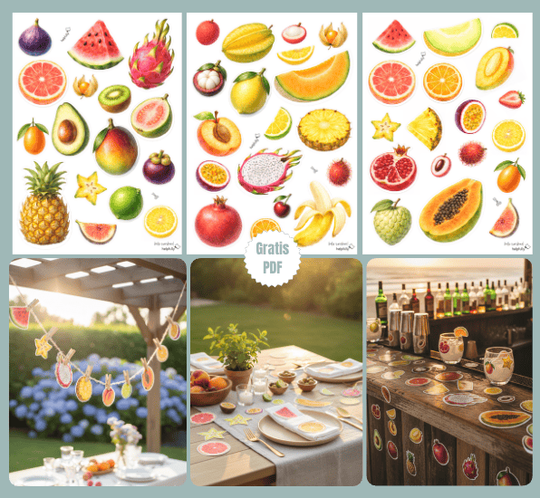Summer Vibes deluxe: Unsere Bastelvorlage mit Früchten „Fruits“ für selbstgemachte Deko! Ja, hol dir den Sommer direkt auf den Basteltisch. Unsere Vorlage bringt dir die volle Ladung Vitamine für DIY-Projekte. Ob spritzige Zitrusfrüchte, saftige Mango, coole Dragonfruch und so viel mehr Früchte – die bunten Motive bringen jeden Raum, jede Party und Geschenke zum Strahlen und sorgen für den Extra-Frische-Kick!