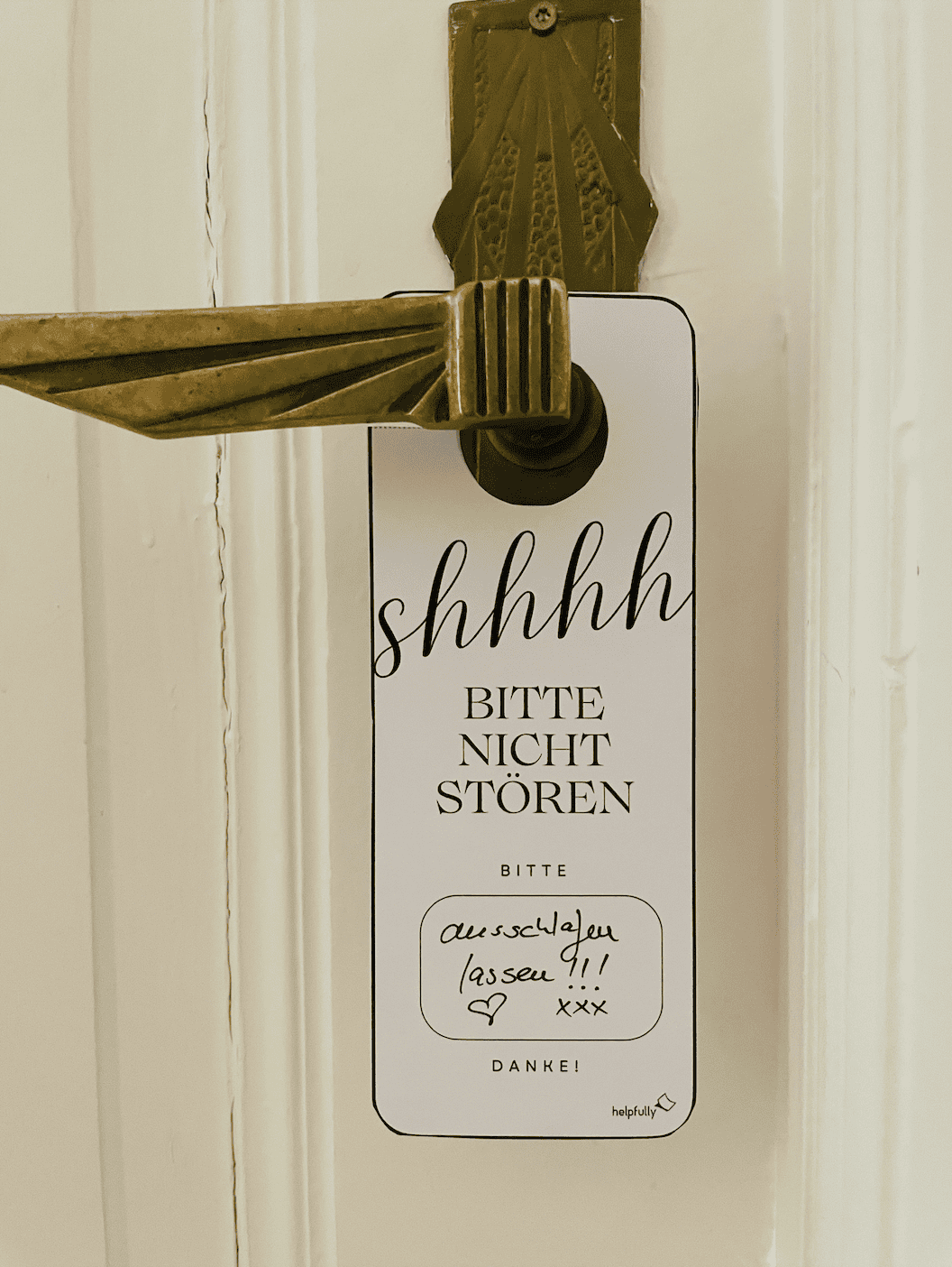 At the bedroom door at home and everywhere else where you simply do not want to be disturbed: The door sign / door tags to print in A4 PDF landscape format are printed out in no time, cut out and gladly still provided with an individual text. „let mom times sleep in, wake me up at 11.00, let me times alone, let me study in peace, bring me an aspirin as soon as you read this….“ There are many reasons why people sometimes just don’t want to be disturbed ♥