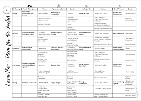 Also, Essensplan downloaden, als A4-Querformat ausdrucken und inspirieren lassen, was die kommenden Tage auf den Tisch kommt.