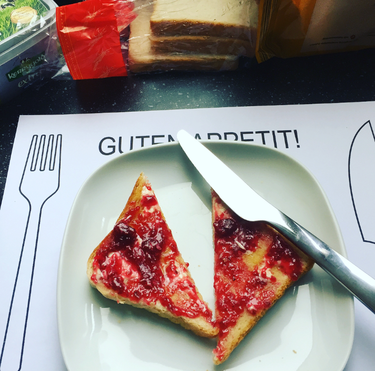 Heute gab’s ein Toastbrot mit salziger Butter und beeriger Marmelade. Weil ich nicht gerne alleine esse, hab ich mir mal ein Guten-Appetit-Platzset ausgedruckt…Hat gleich noch viel besser geschmeckt!