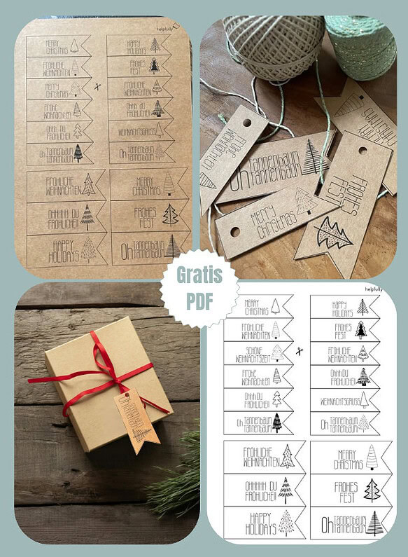 Mit Liebe zu Weihnachten und Ferudeschenken gemacht, von helpfully. Schnell gedruckt, schön gebunden, sofort festlich. Wir haben die Geschenkanhänger zum Ausdrucken übrigens auch noch in der Rot/Grün-Variante!