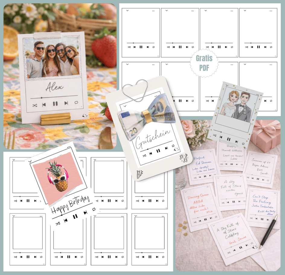 Kleine Playlist aus Papier, große Wirkung: Die Mini-Vorlagen im Kartenformat perfekt für die ganz persönlichen Momente und interaktive Event- und Geschenk-Ideen! Manchmal sagt ein kleiner Song mehr als eine große Rede. Unsere Playlist-Vorlagen im S-Format sind die ultimativen Allrounder für alle, die Musik lieben. Ob als cooler Gutschein, interaktive Hochzeits-Idee oder cleveres Schul-Quiz – die Streaming-Designs bringen den richtigen Rhythmus in allerlei Bastelprojekte!