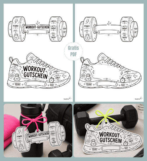 No Excuses – jetzt wird losgelegt! Wer sagt eigentlich, dass Fitness-Geschenke immer nur aus Schweiß und harten Gewichten bestehen müssen? Mit unseren Bastelvorlagen für Sport-Gutscheine verschenkst du die ultimative Portion Motivation im XL-Format. Ob für das neue Gym-Abo, ein Paar stylische Turnschuhe oder das lang versprochene gemeinsame Workout – die Gutscheine sind das perfekte Warm-up! Egal ob für die Partner, Mama, Schwester, die beste Freundin oder den Kumpel: Mit der Hantel und dem coolen Turnschuh zeigst du direkt, dass du ihr sportliches Ziel voll unterstützt.