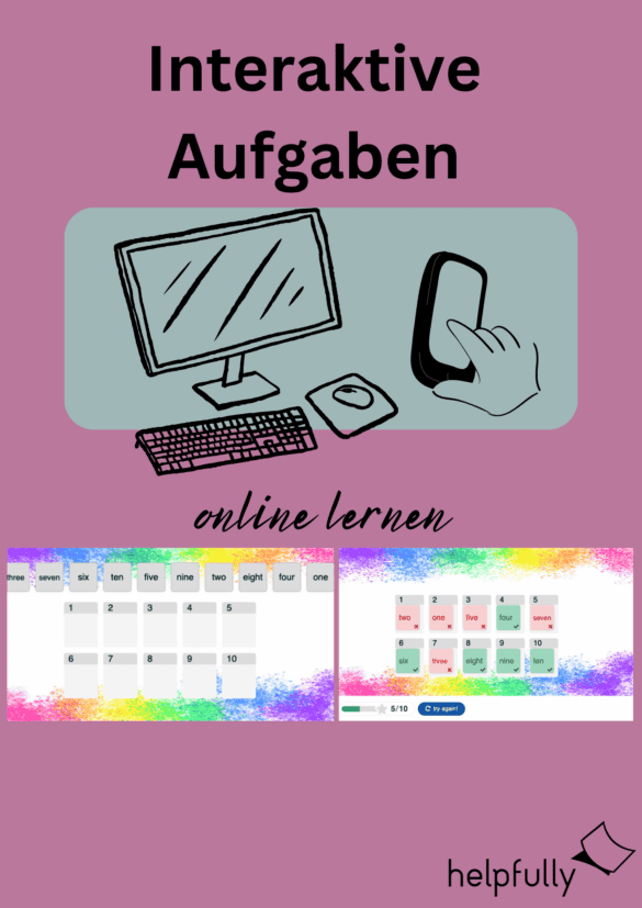Meine Schwester ist Grundschullehrerin und hat sich von mir eine leichte interaktive Aufgabe gewünscht, die sie mit ihren kleinen Schüler:innen im Englischunterricht machen kann. Also Abla, hier für Euch (und natürlich Dich da draußen) eine Aufgabe, in der die Kids die englischen Zahlen via Drag & Drop in die nummerierten Kästchen ziehen müssen. Für jede richtige Aufgabe wird nach dem Check-Button ein Punkt und Sternchen vergeben. Die falschen Antworten werden rot markiert und das Ganze kann durch den „try again!“ (probiere es noch einmal) Button wiederholt werden!