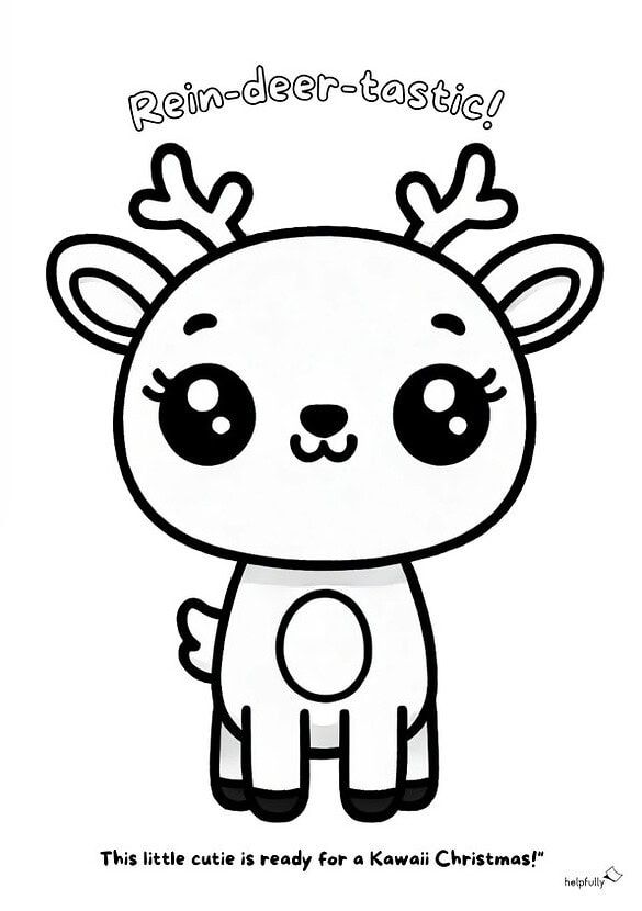 Rein-deer-tastic! Das süße Kawaii-Rentier bringt dir die ganze Weihnachtsfreude direkt aufs Malpapier. Hol dir das zauberhafte Kawaii-Ausmalbild und lass die Weihnachtszeit in den schönsten Farben erstrahlen – exklusiv und gratis bei helpfully.de, denn es ist Zeit, das Winterwunder zuckersüß zu kolorieren!