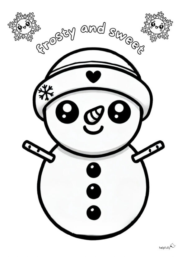 Frostig, süß und bereit für den kreativen Winterspaß – unser Kawaii Schneemann auf der Malvorlage wartet nur darauf, von dir ausgemalt zu werden! Hol dir die winterliche Magie nach Hause und bring Farbe in den Schnee – exklusiv und gratis bei helpfully.de! Lass uns gemeinsam die kalte Jahreszeit ein wenig süßer machen, gerne auch noch mit den anderen Ausmalbildern der Kawaii-Winterserie, hier bei uns!
