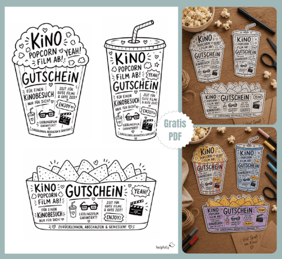 Hol dir jetzt den kostenlosen Download, schnapp dir die Schere und sorge für das größte Grinsen seit der Erfindung des Popcorns. Mit viel Liebe zum Detail und Vorfreude auf den nächsten Kinobesuch von helpfully gestaltet!