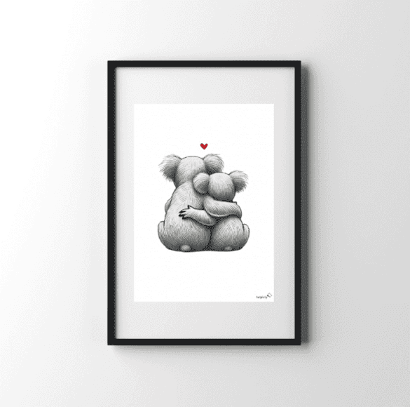 Bereit für eine kuschelige Liebesgeschichte aus dem Eukalyptuswald? Unser Koala-Paar zeigt sich von hinten, wie sie entspannt aneinanderlehnen, mit einem Herz, das ihre flauschige Zuneigung perfekt abrundet. Die kleinen Romantiker wissen eben, wie man chillt – und lieben kann! Ideal für alle, die auf süße Tiermotive stehen und etwas Liebe in ihr Zuhause bringen möchten.
