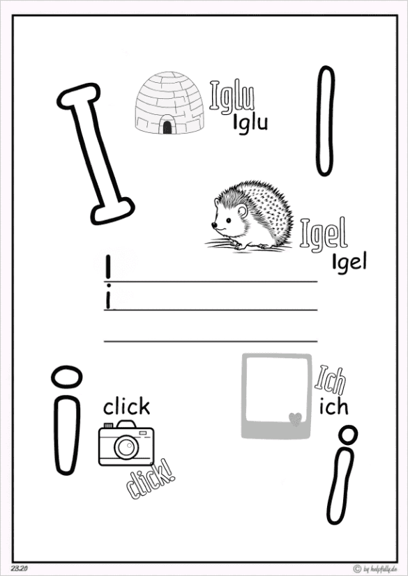 Igel, Iglu, ich, click: Ja, auch der Buchstabe I,i steckt in einigen tollen Wörtern und Namen. Druck das PDF aus und schreibe, male aus und lerne mit Spaß die Buchstaben kennen. Und keine Sorge: Sobald du in der Schule bist, wird alles ganz toll erklärt und du wirst noch mehr Wörter kennenlernen!