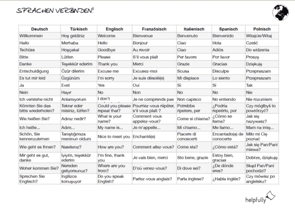 Wir wissen, dass Du auch zu Deinem Handy greifen kannst, um Wörter und Sätze übersetzen zu lassen, allerdings lieben wir Listen und Lernblätter, die mal nicht digital sind und außerdem hat mich meine Mutter darum gebeten (: Und was Mama sagt, mach‘ ich!