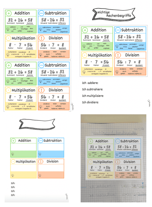 Addieren, Subtrahieren, Multiplizieren, Dividieren: Diese und noch mehr Mathe-Begriffe sind absolut wichtige Grundlagen beim Rechnen. Du kannst die Gratis-Vorlagen in der Grundschule für den Unterricht und natürlich auch zu Hause beim Üben gerne verwenden. Wir haben drei Vorlagen erstellt, die Lehrer:innen auch die Möglichkeiten geben, eigene Arbeitsblätter zu erstellen, um noch mehr Abwechslung reinzubringen. Die erste Seite umfasst die Regeln, jeweils doppelt abgebildet, so wird beim Drucken Papier gespart, du kannst die Lernkarten danach ausschneiden und die Kids können diese zum Beispiel in ihr Matheheft kleben.