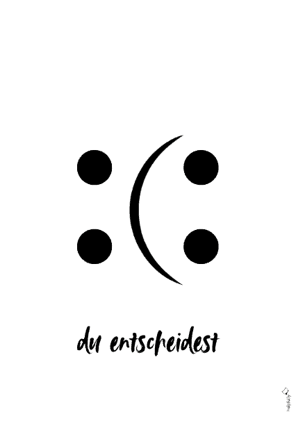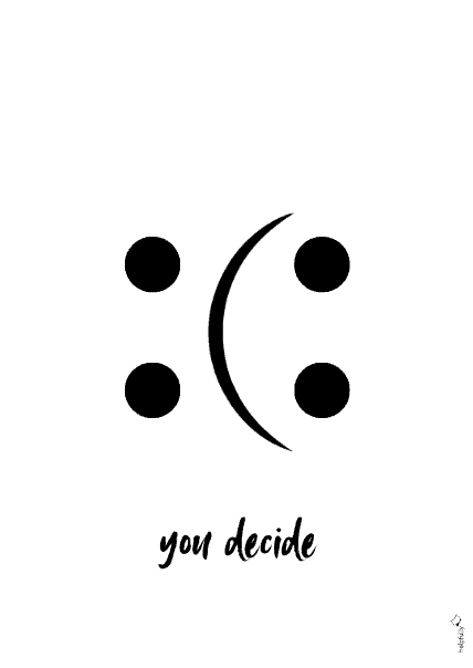 Entdecke unsere zwei Gratis-Poster-Vorlagen, die nicht nur dein Zuhause, sondern auch gerne deine Perspektive verschönern. Auf dem A4-Wandbild zum Ausdrucken prangt ein einfacher, aber ausdrucksstarker Smiley-Mund der je nach Sichtweise lächelt oder grimmig ist – auf der einen Vorlage begleitet vom Spruch „you decide“, auf der anderen von „du entscheidest“.