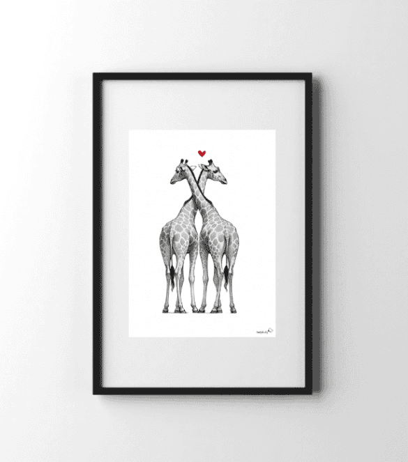 Du suchst eine Deko, die das Herz das ganze Jahr über höher schlagen lässt? Unser Giraffenpaar zeigt sich in voller Pracht – von hinten, mit ihren langen Hälsen liebevoll umeinander geschlungen, und darüber schwebt ein Herz. So romantisch und gleichzeitig modern, dass es perfekt zu jeder Gelegenheit passt: ob zum Valentinstag, zur Hochzeit oder einfach mal so zwischendurch, um jemandem (oder dir selbst) ein Lächeln ins Gesicht zu zaubern. Das Poster machen deine Wände garantiert zu Liebeserklärungen auf ganzer Linie. Und wenn dir das gefällt, schnapp dir auch die anderen Tierpaare von helpfully.de, denn die Liebe kennt keine Grenzen!
