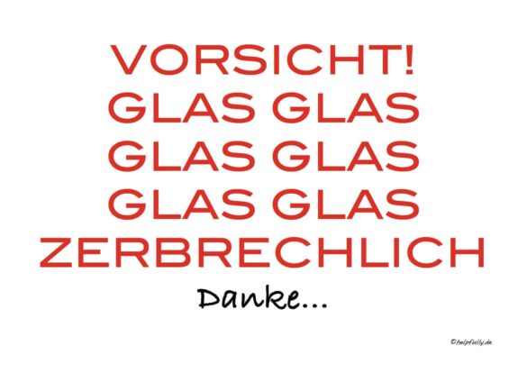 Beim Umzug immer nützlich: Ein Papierausdruck mit Warnhinweisen für die Kartons mit den zerbrechlichen Inhalten….