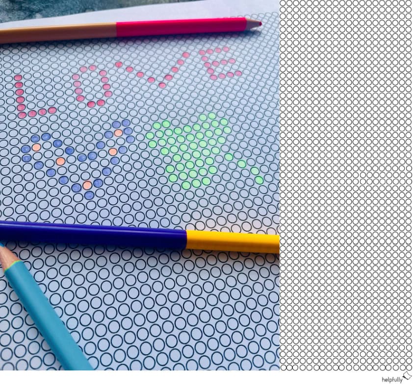 Ob du „LOVE“ schreibst, ein Herz, ein Einhorn oder dein Lieblings-Tier als Punkt-Kunst verewigst, auf der Vorlage ist allerlei möglich! Mit Buntstiften, Filzstiften- du entscheidest. Das Blanko eignet sich für Kinder genauso wie für Erwachsene. Sie ist super als entspannender Zeitvertreib, als Vorlage fürs Basteln oder als Vorlage für Steckperlen. Wer will, kann sich auch eigene Mandalas oder geometrische Kunstwerke gestalten.