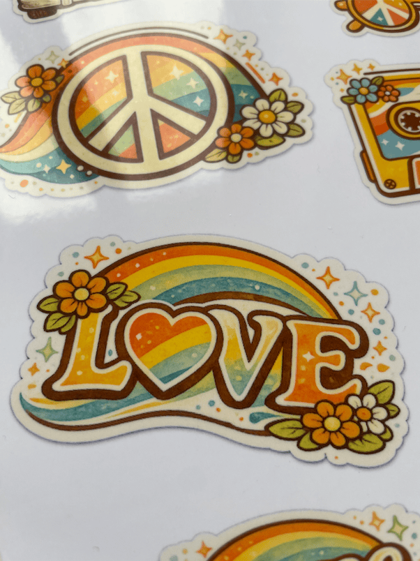 Flower-Power für jetzt: Die Retro-Sticker bringen Good Vibes, Peace-Energy und eine Portion „Be kind“ auf alles, was du liebst. Druck’ sie auf Stickerpapier, als temporäre Tattoos, mit Wasserschiebefolie auf Tassenm oder als Bügelbilder auf Taschen, Caps und Shirts – und schon zieht 70s-Sonne ein, yeah!