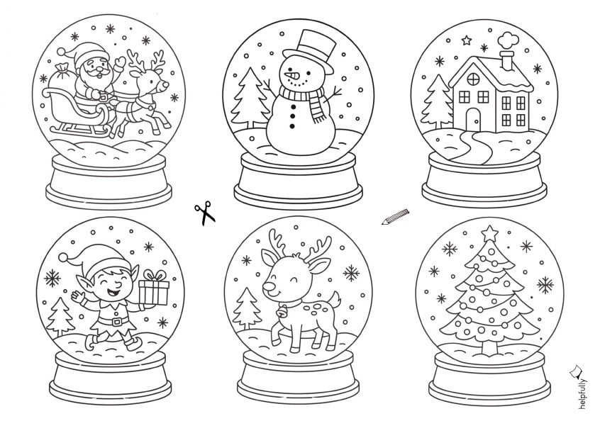 Ausdrucken in Originalgröße, schwarz-weiß, ausschneiden, bunt ausmalen (Fantasie an!), gerne noch einen Gruß vorne in den Schneekugelbanner und/oder rückseitig – fertig. Wer mag, klebt die Kugeln auf Klappkarten, steckt sie an Geschenke, locht sie oben und fädelt eine Kordel durch. Ein bisschen Glitzer, Watte-Schnee oder Sticker dazu und schon wird’s noch magischer!