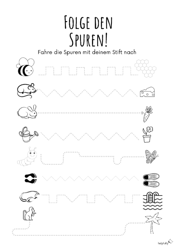 Schon gesehen? Hier findest Du noch mehr Übungen zum Nachspuren als kostenlose Arbeitsblätter zum Ausdrucken!