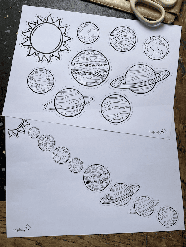 - Ausschneiden leicht(er) gemacht: Wir haben der Sonne und den Planeten jeweils Hilflinien verpasst, so fällt es den Kindern das Ausschneiden leichter.