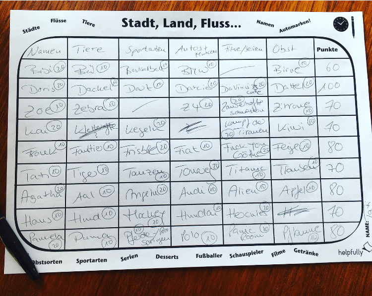 Die Spielregeln bei Stadt Land Fluss sind schnell erklärt und auch wenn es Abweichungen, oder eigene Vorlieben gibt, stellen wir Euch hier mal kurz unsere Version vor: