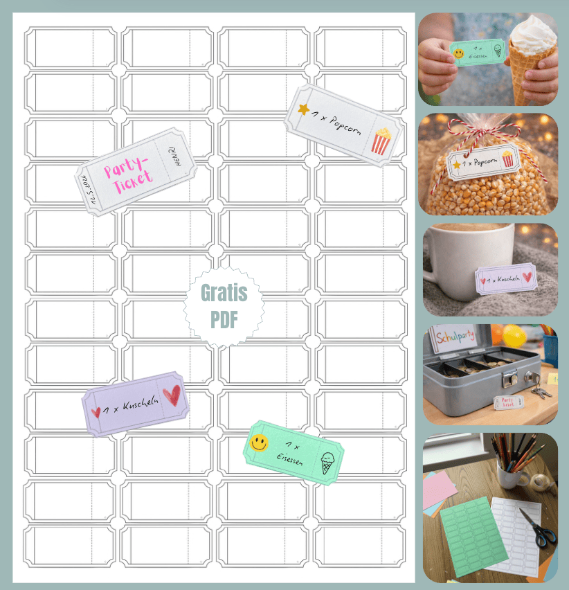 - Auch für Erwachsene steckt viel Potenzial in den Mini-Tickets. Sie eignen sich als liebevolle Gutscheinidee im Alltag: 1 x Kaffee, 1 x Frühstück, 1 x Kinoabend, 1 x Auszeit. Schnell gemacht, persönlich und viel charmanter als ein gekaufter Gutschein.