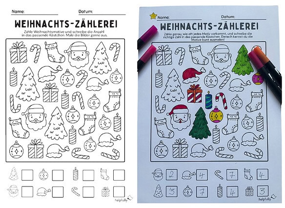 Zählen lernen – mit dem Übungsblatt „Weihnachts-Zählerei“ 🎄