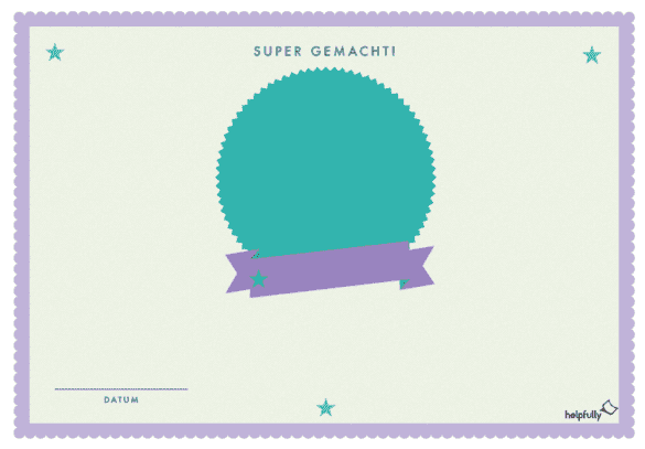 Die Urkunde bringt es auf den Punkt: Super gemacht! Für Kindergarten- und Schulkinder, beim Geburtstag oder einfach, weil man das/die beste(en) Kind(er) der Welt zuhause hat… Vorlage ausdrucken, Name und Datum eintragen, wer will noch ein Bild und fertig ist die große Freude!