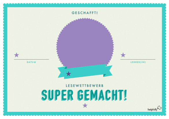 Coole Urkunde für alle Leseratten: Die helpfully-Vorlage kann an alle Schulkinder verteilt werden, die beim Lesewettbewerb mitgemacht haben, denn das ist ja wohl schon eine riesen tolle Leistung!