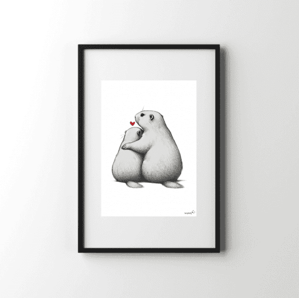 Egal ob für dich selbst oder für jemanden, der Murmeltiere genauso liebt – es ist einfach unwiderstehlich! Und das Beste? Die tierische Liebesparade geht weiter! Hol dir auch die Tierposter mit Waschbären, Pinguinen, Elefanten, Giraffen, Hunden, Katzen, Hasen, Mäusen oder Walen und füll dein Zuhause mit tierischer Zuneigung.