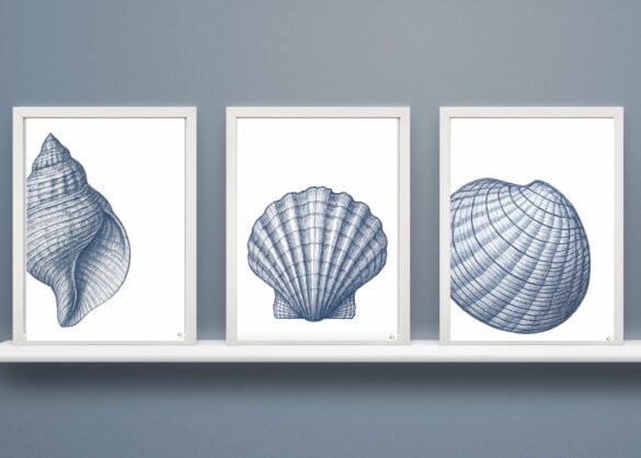 Die stilvolle 3er-Serie mit Muscheln im gezeichneten Stil in Ozeanblau bringt sofort entspannte Sommerlaune in jedes Zuhause. Ob einzeln oder als Trio, ob im Bad, Schlafzimmer, Flur oder Café – die Wandbilder machen überall eine maritime Figur.