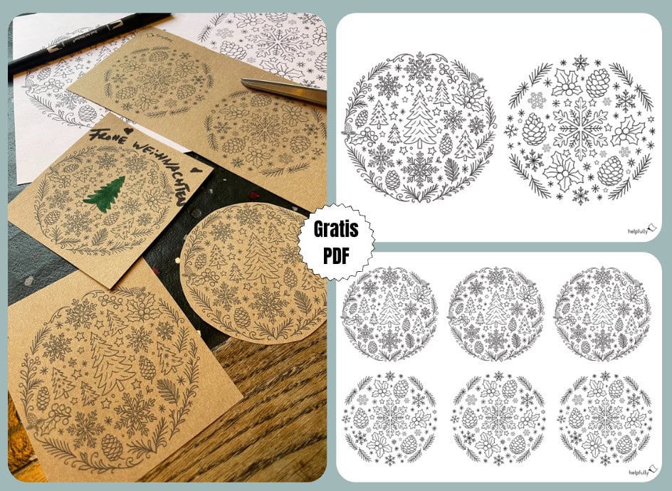 Einfach als Gratis-PDF in Originalgröße ausdrucken, nach Lust und Laune colorieren, ausschneiden und Wintervibes verteilen. Mit Liebe zu Bastelmomenten gemacht, gern mit Glühwein oder heißem Tee dabei, von helpfully.