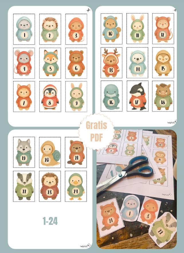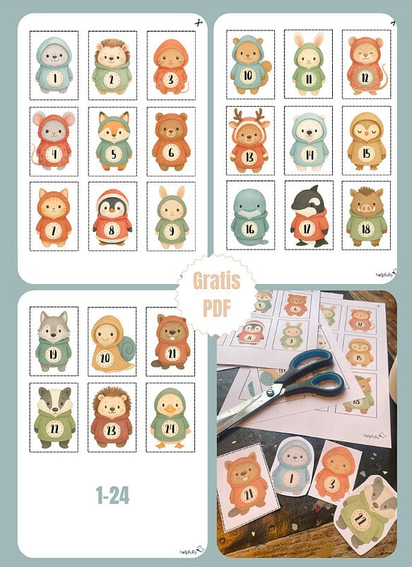 Advent, Advent… hier kommen 24 kleine Winter-Herzenseroberer! Unsere Adventskalenderzahlen „Wintertiere“ tragen die Zahlen 1–24 schon stolz auf dem Bauch und sind bereit fürs große Countdown-Abenteuer. Einfach die Gratis-Vorlage von helpfully ausdrucken, ausschneiden und losdekorieren: auf Papiertüten, Boxen, Umschlägen, Marmeladengläsern, kleinen Päckchen oder direkt als Sticker – auf selbstklebendem A4-Etikettenpapier wird’s besonders fix, auf festerem Papier (160/170 g) besonders edel und stabil.